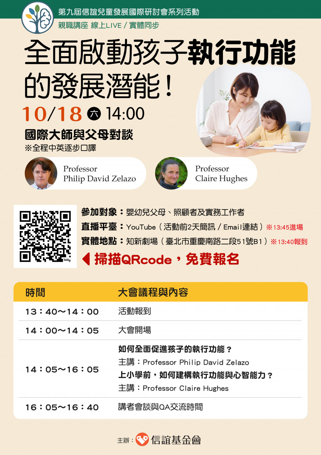 信誼將於2025年 10月18日(六)下午2:00-4:40舉辦【全面啟動孩子執行 功能的發展潛能!】實體/線上LIVE 講座