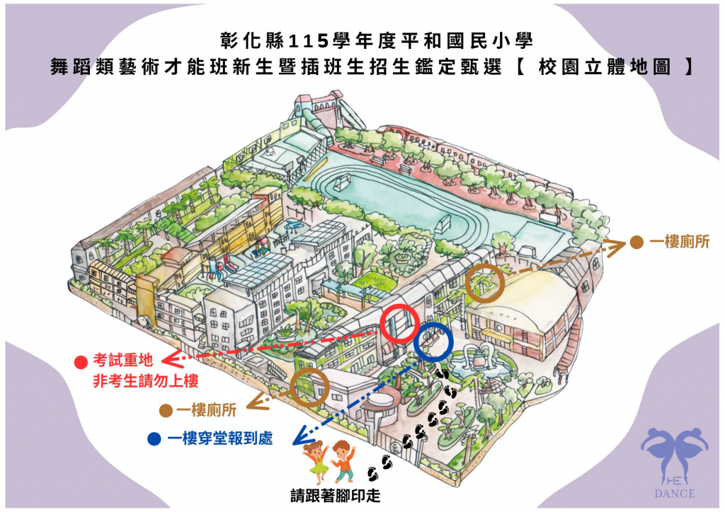 五、考生攜帶准考證,著緊身衣、合身舞蹈練習服裝或夏季運動服,著運動鞋或舞鞋參加術科測驗。